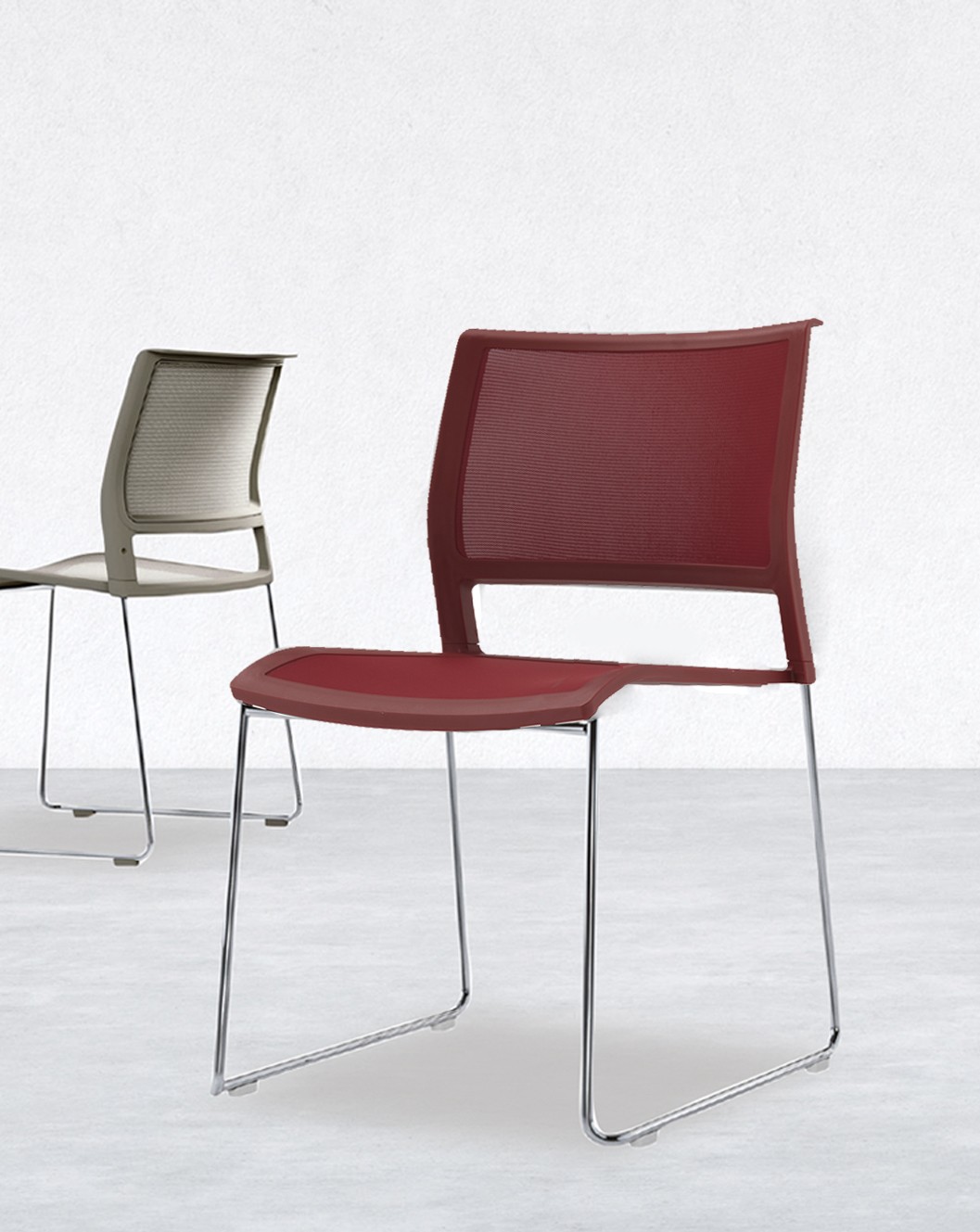 Tous les composants en résine de la chaise Tipo proviennent de polypropylène recyclé à 100%. La résille qui permet à l'assise et au dossier d'être si confortable, est tissé avec un fil provenant à 100% de bouteilles en polytéréphtalate d'éthylène (PET) recyclé.
